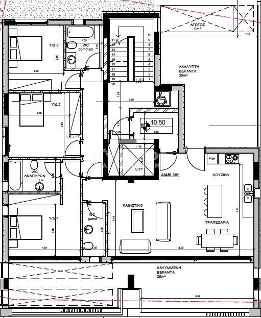 120 τ/μ κ/χ , με 3 υπνοδωμάτια, στο κυρίως υπνοδωμάτιο διαθέτει ντους , wc. Διαθέτει 1 κουζίνα open plan,1 καθιστικό, 1 τραπεζαρία, 3 WC, 1 μπάνιο, 1 ντους, 1 wc ξένων ,1 αποθήκη, 1 parking καλυμμένο, 2 βεράντες 1 καλυμμένη,